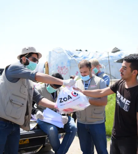 ZOA deelt hulpgoederen uit in een vluchtelingenkamp in Irak.