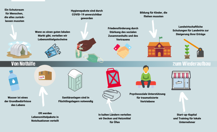 Von der Nothilfe bis zum Wiederaufbau, das ist der Slogan, um den man bei ZOA nicht herumkommt.
