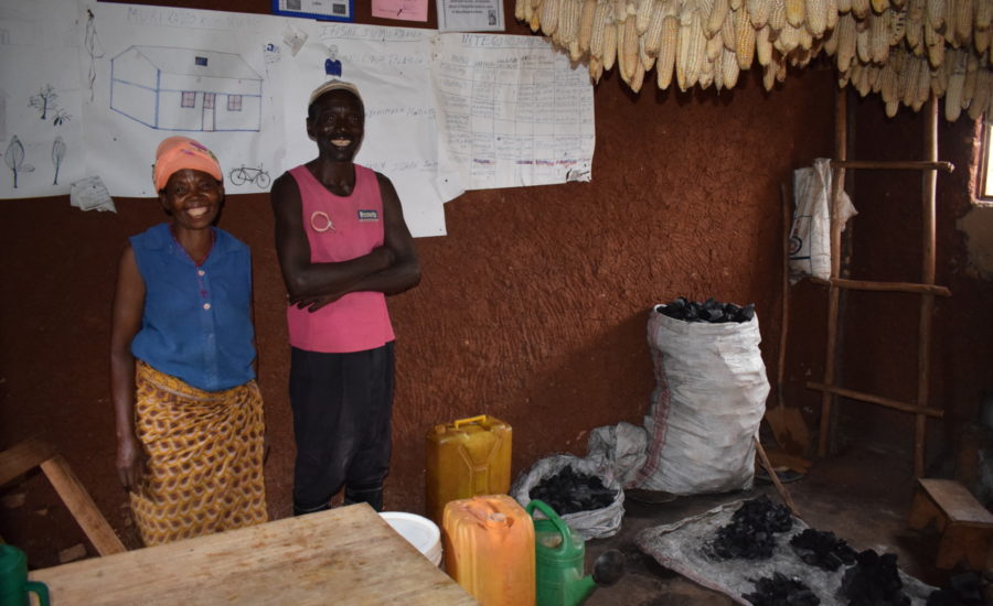 Marie ist von dem Projekt begeistert. „Nach der PIP-Schulung haben wir uns sofort an die Arbeit gemacht, zusammen mit unserem Sohn. Wir haben zunächst unser derzeitiges Leben und die Situation, die wir erreichen wollen, gezeichnet. Wir wollen ein größeres Haus mit einem Solarpanel darauf. Also lernten wir, wie man Mais anbaut. Während der Mais wuchs, verkauften wir Kohle. Und zudem haben wir sieben Hühner, zwei Ziegen und ein Schwein. Wir können sie später auf dem Markt verkaufen. Wir wollen uns von dem Erlös ein Fahrrad kaufen, damit wir nicht mehr zu Fuß zum Markt gehen müssen.“Marie fährt stolz fort: „Und seht mich an: Ich sehe wieder gut und gesund aus!“